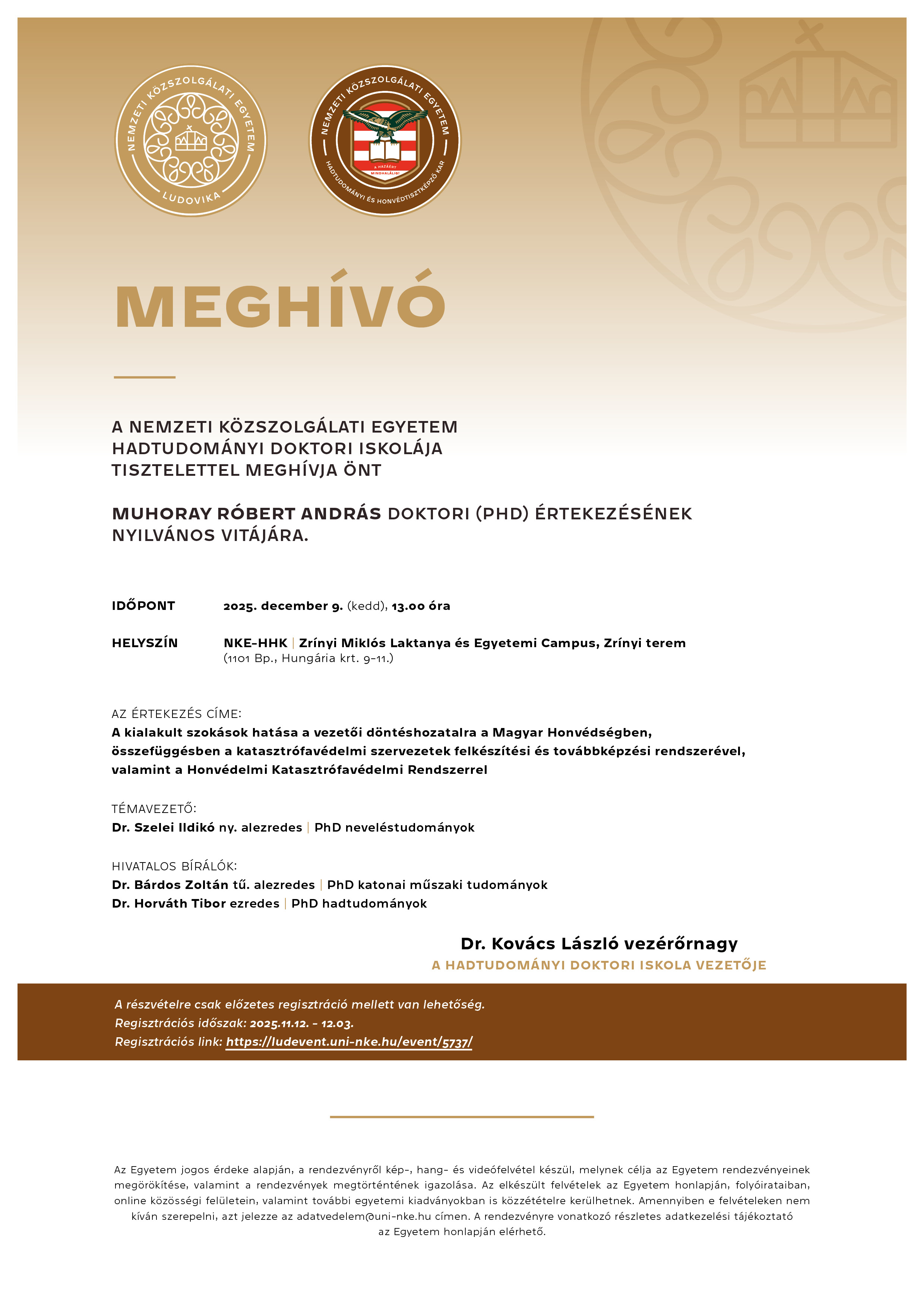 Muhoray Róbert András doktori értekezésének nyilvános vitája