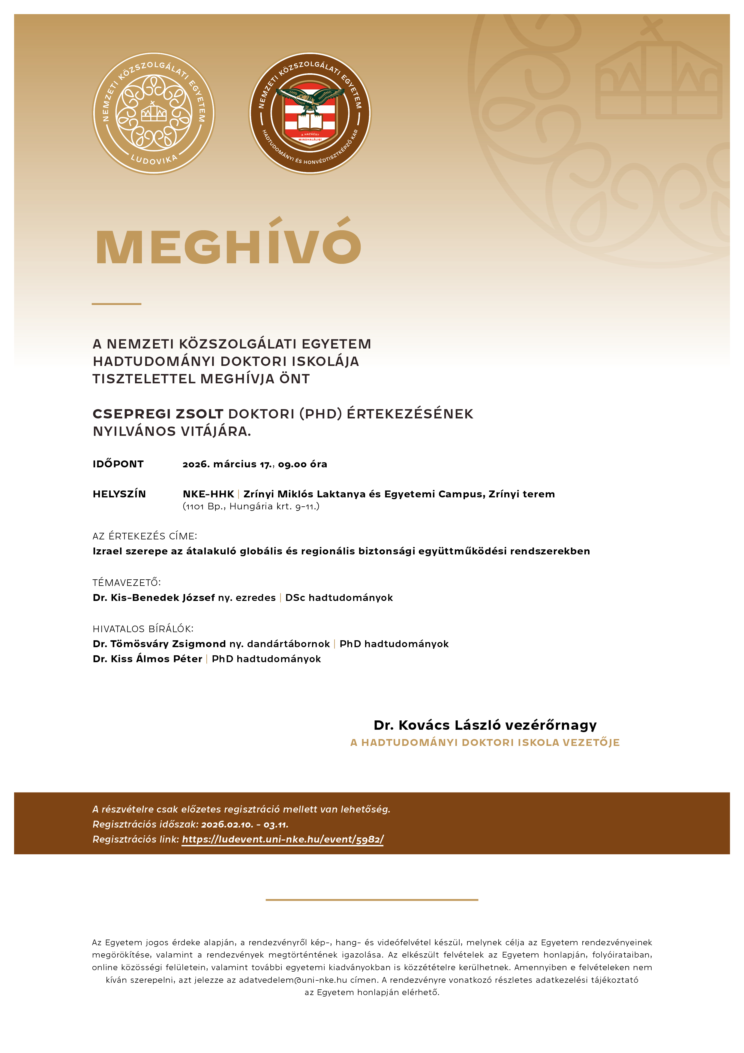 Csepregi Zsolt doktori értekezésének nyilvános vitája