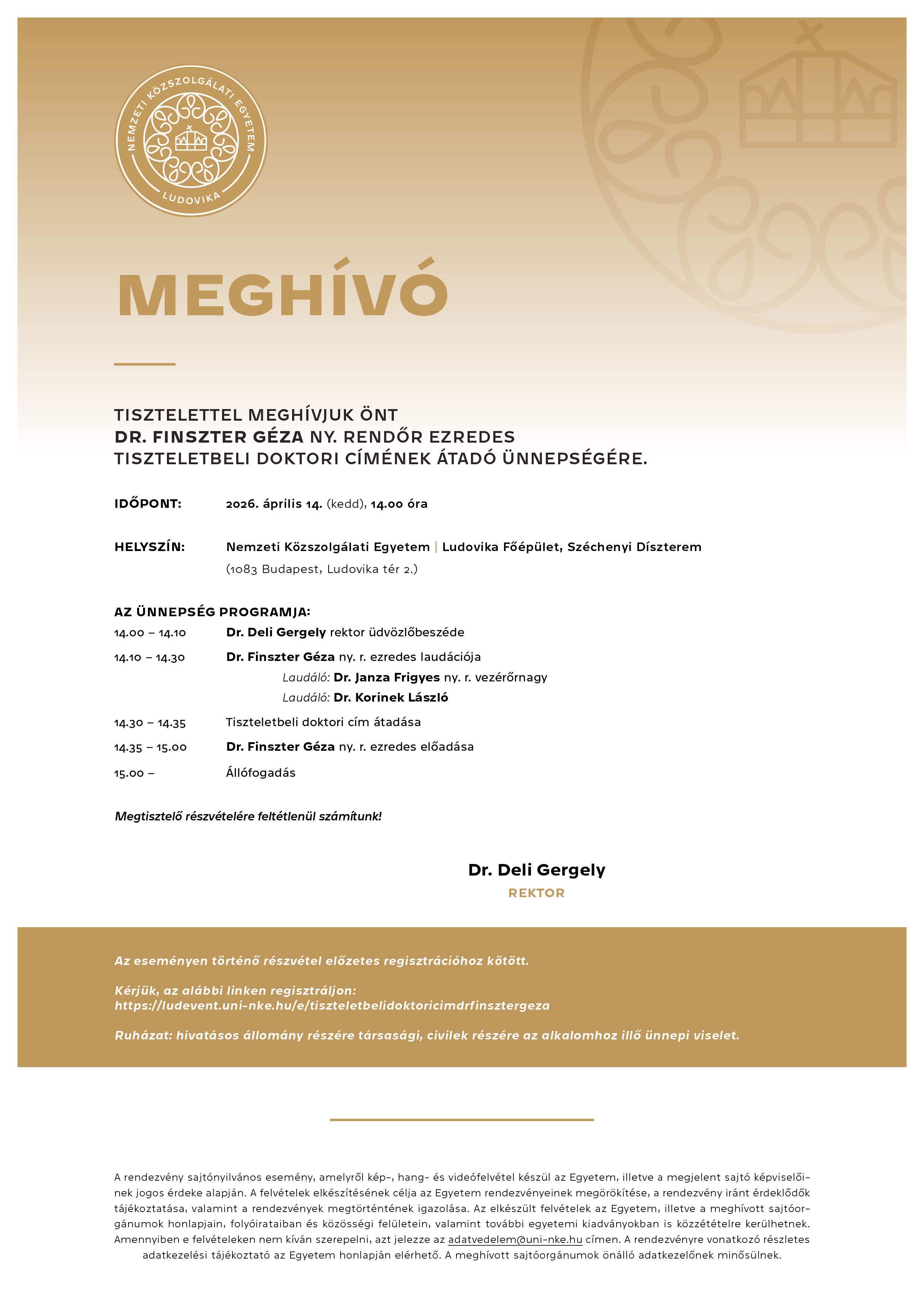 Dr. Finszter Géza ny. r. ezredes Tiszteletbeli Doktori Cím átadó ünnepsége